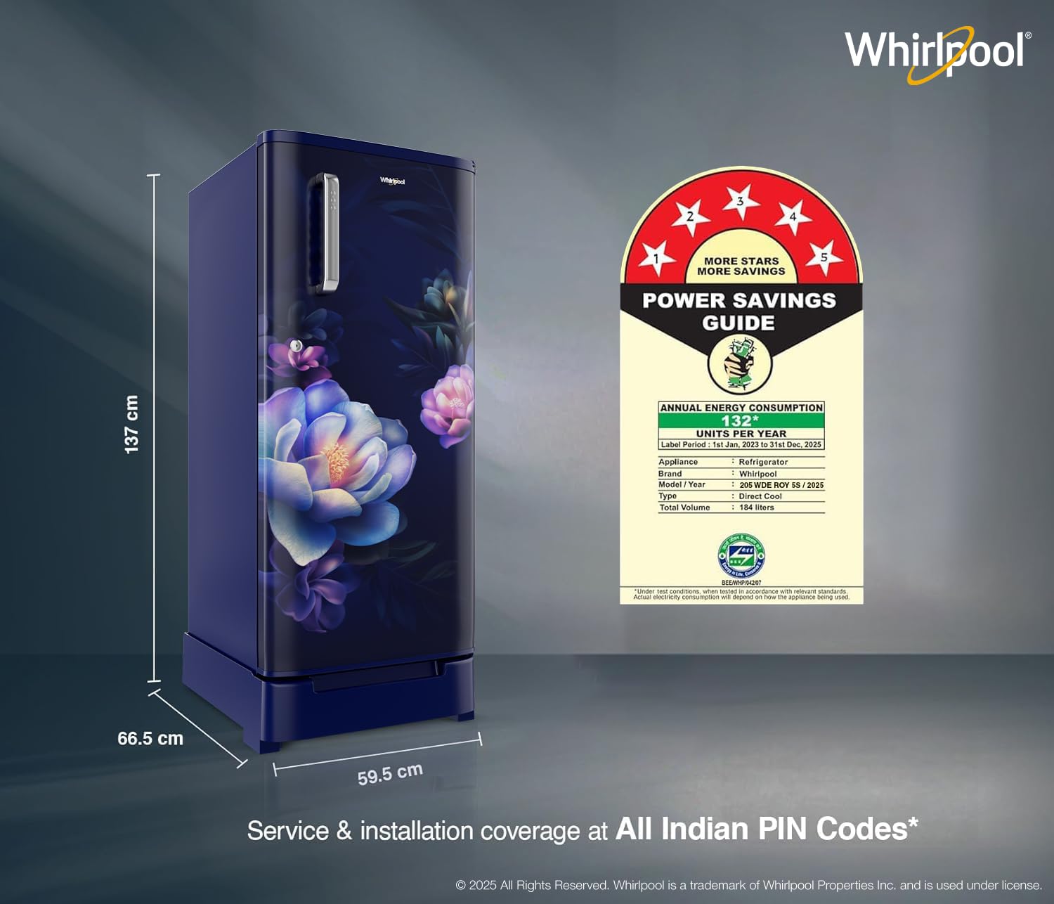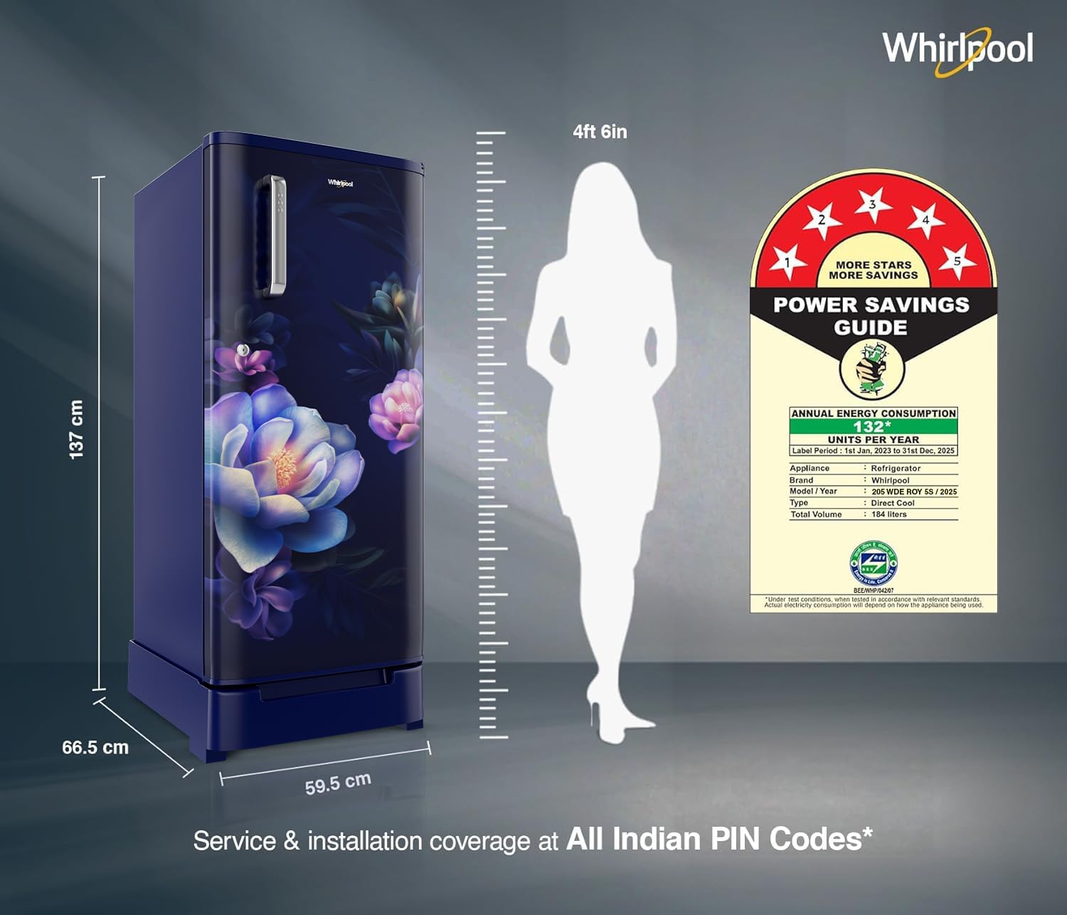 Whirlpool 184 L 5 Star Direct-Cool Single Door Refrigerator with Intellisense Inverter Compressor (205 WDE ROY 5S INV SAPPHIRE SERENA -Z1)