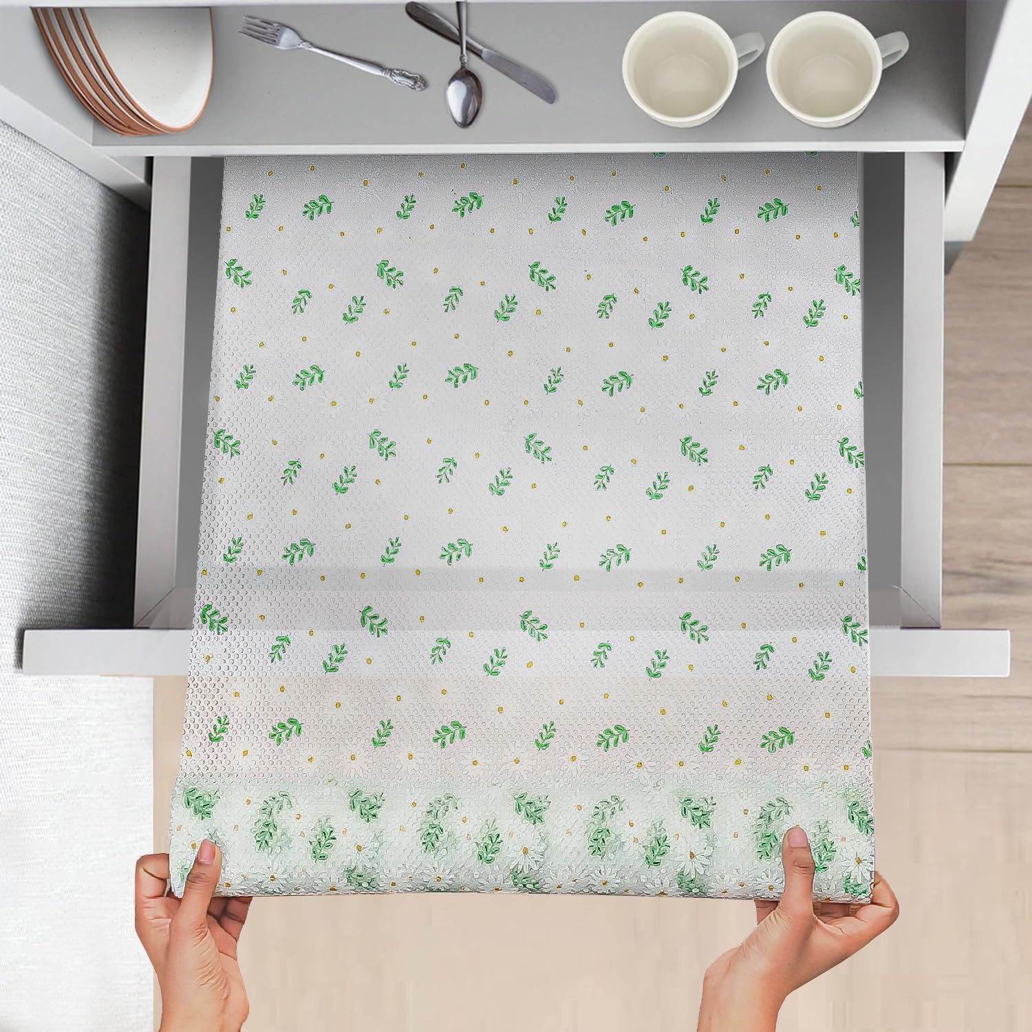 Yellow Weaves PVC Kitchen Mat Fridge Mats 45 cm X 3 Meters Anti Slip Roll, Shelf Liners Sheet for Kitchen, Shelves, Cabinet, Drawer, Wardrobe, Refrigerator, Table (Green Leaves)