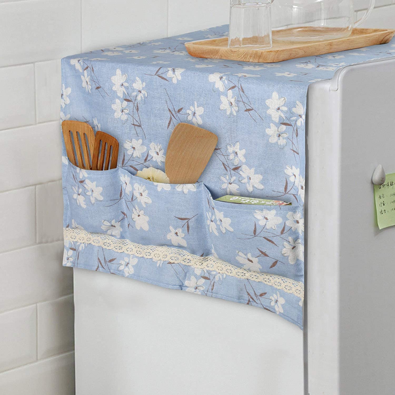 Zollyss Refrigerator or Fridge Cover Sea Cotton Cloth Anti-dust Cover Fridge Towel dust Cover Freezer Refrigerator Desktop Sundries Washing Machine Organize Storage Bags (Blue)